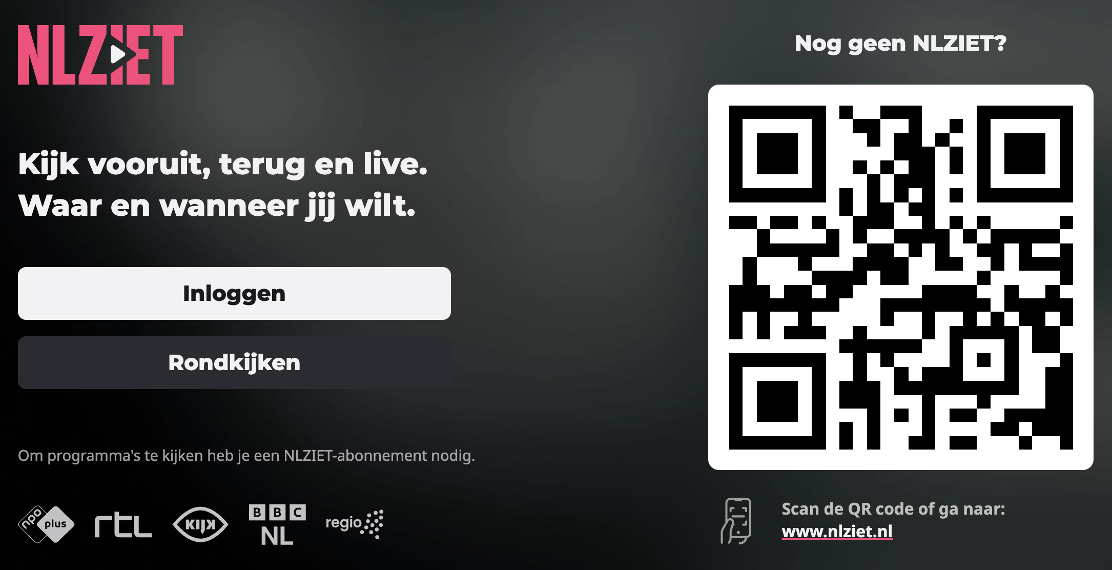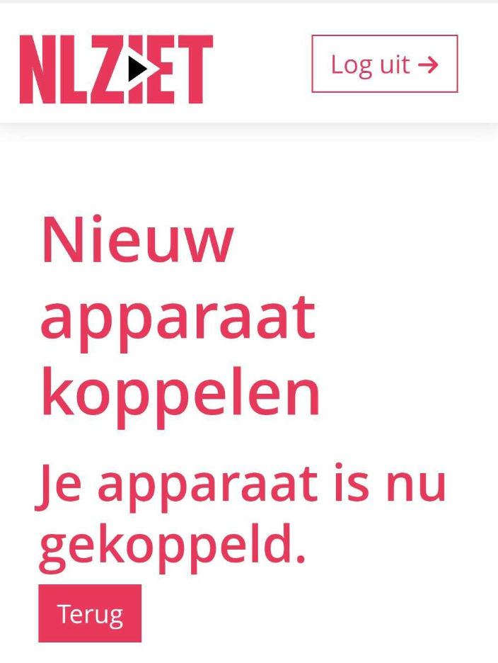 Ga naar https://nlziet.nl/koppel op je telefoon, tablet of computer.